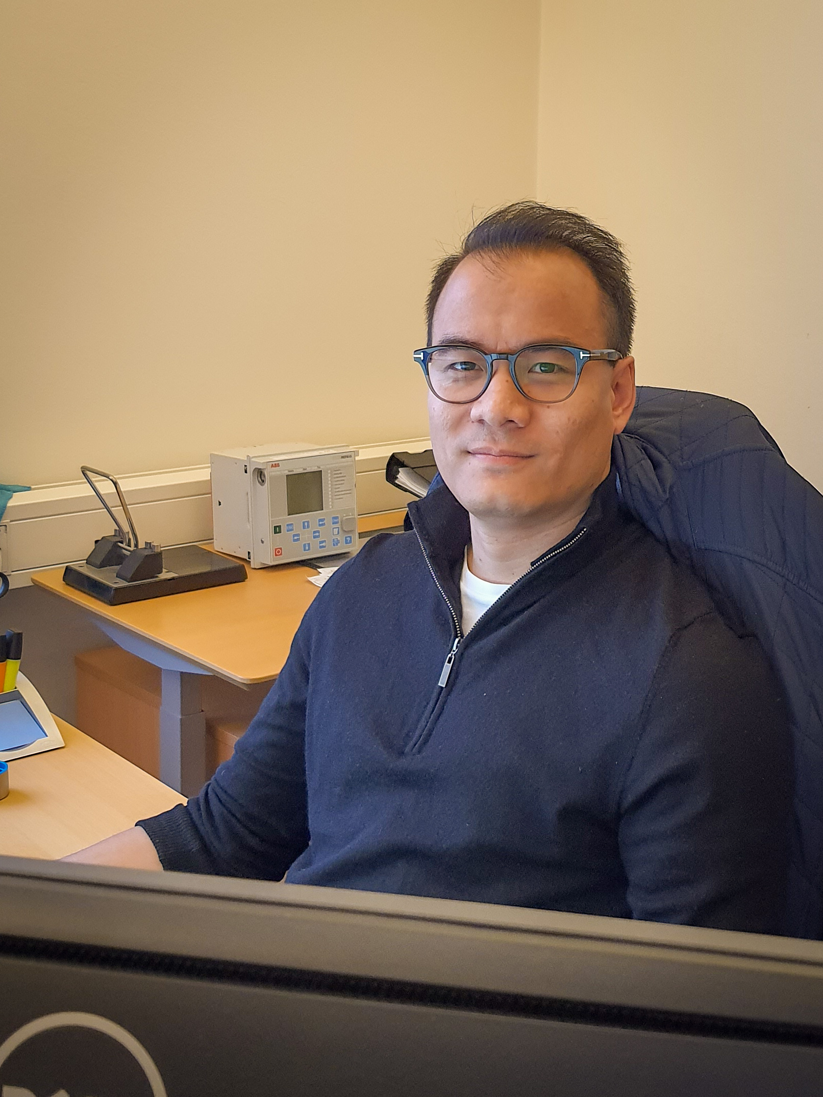 Kim har arbetat på Omexom i Eksjö i två år, först som el-konstruktör och sedan början av sommaren 2020 som mek-konstruktör. Samtidigt studerar han till Elnätsspecialist inom reläskydd på distans vid Yrkesakademin.